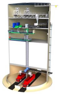 欧罗仓烟气脱硫石膏存储方案将3个主要系统功能结合在一起,在一个最小的占地面积上实现,脱水、存储、卸料功能在全自动筒仓系统内完成。同传统的石膏棚库存储相比,这种方式优势巨大,