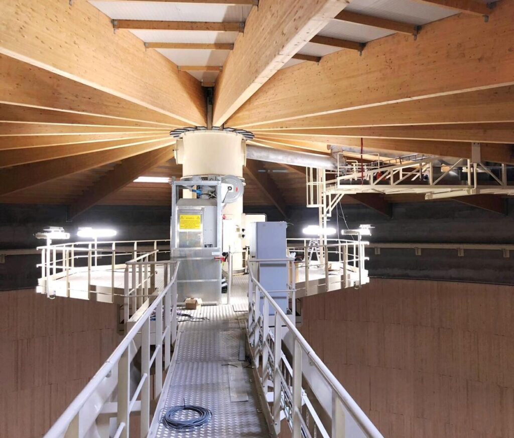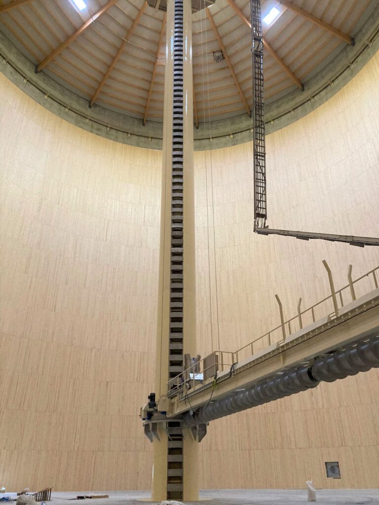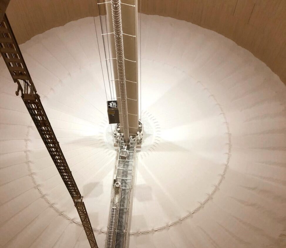 The big advantage is the ability to store more starch: up to a height of 45 meter with a diameter of 50 meter can be stored without any problem. The closed infeed reduces dust to a minimum, safeguarding ATEX standards, while the central hatched column guarantees controlled output, even after more than a year storage!